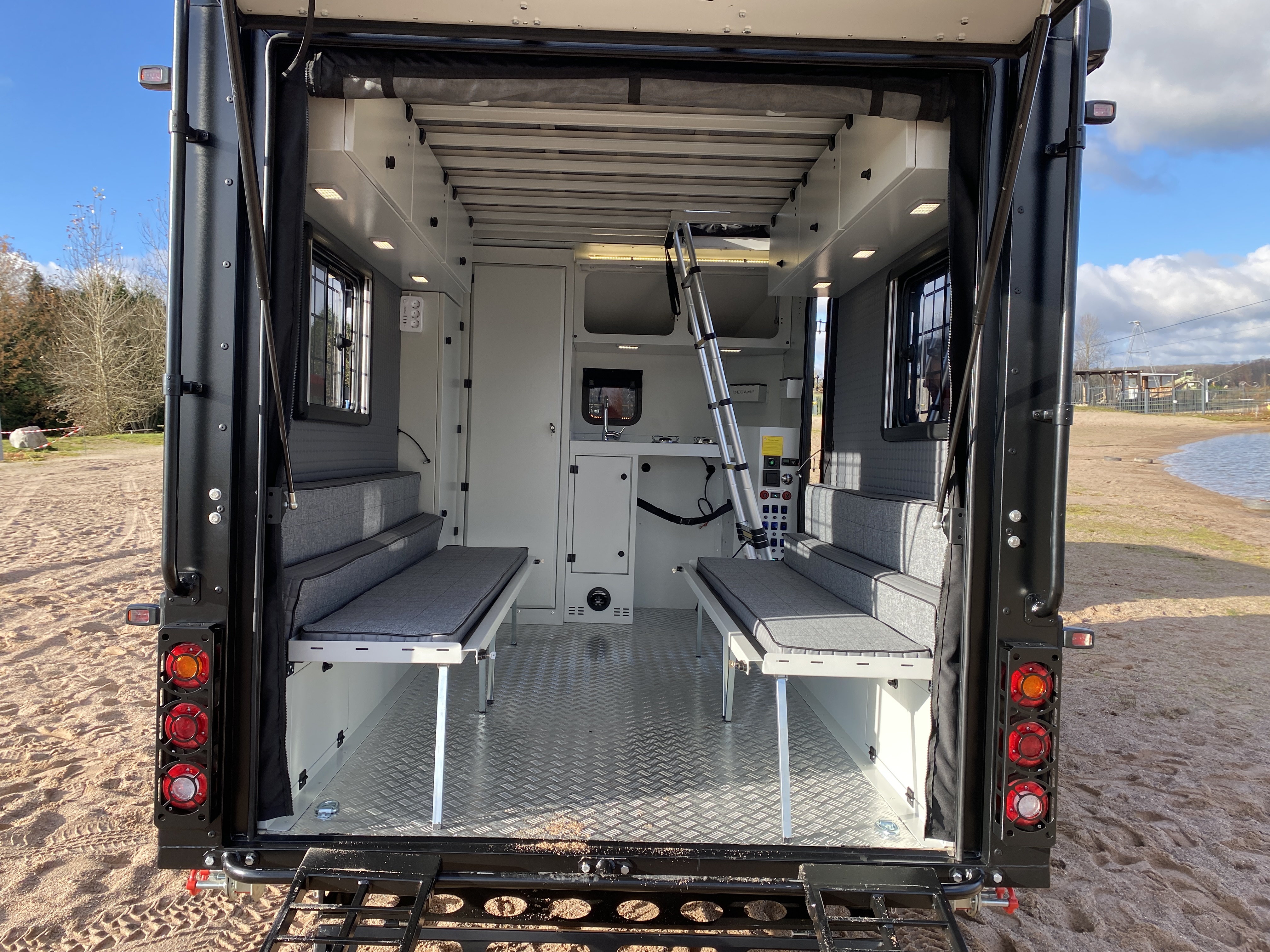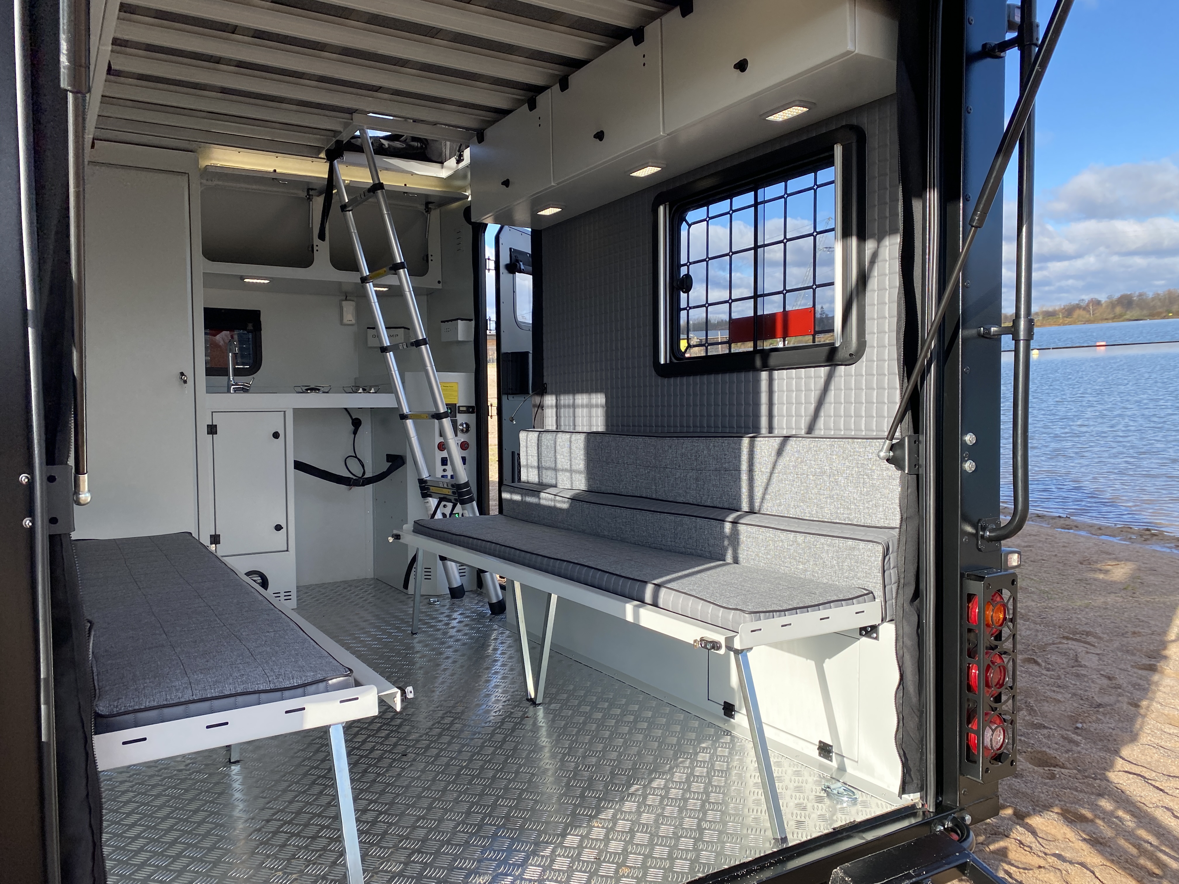 La Cross C3 a été pensée pour les aventuriers qui veulent allier loisirs motorisés et confort. Son espace arrière permet de charger facilement un quad ou plusieurs motos, tout en gardant un aménagement optimisé pour voyager.