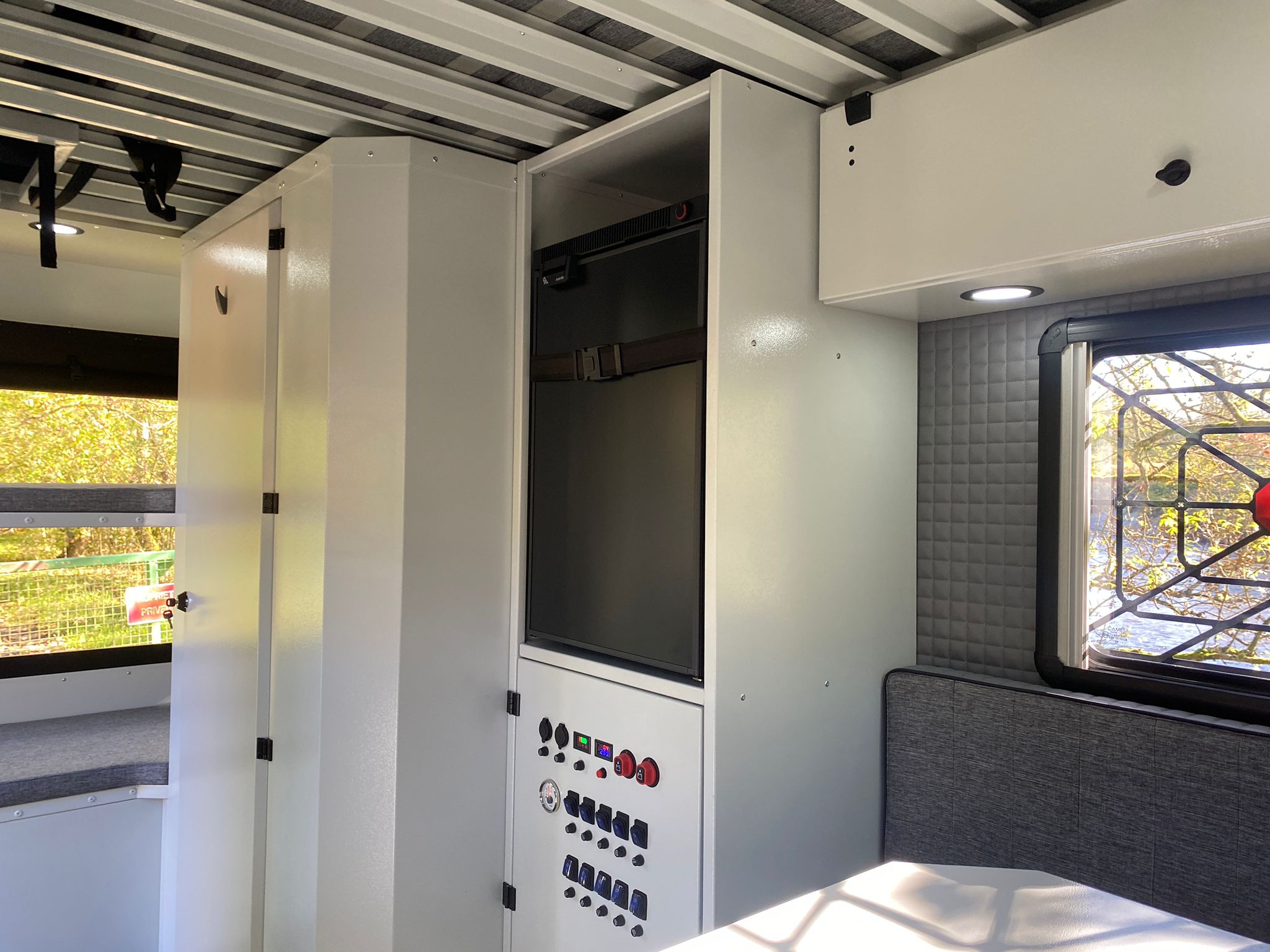 Un véritable confort en expédition : lavabo, douche intérieure avec eau chaude/froide et rangements optimisés. Vous profitez d’un espace sanitaire digne d’un camping-car, même en pleine nature.