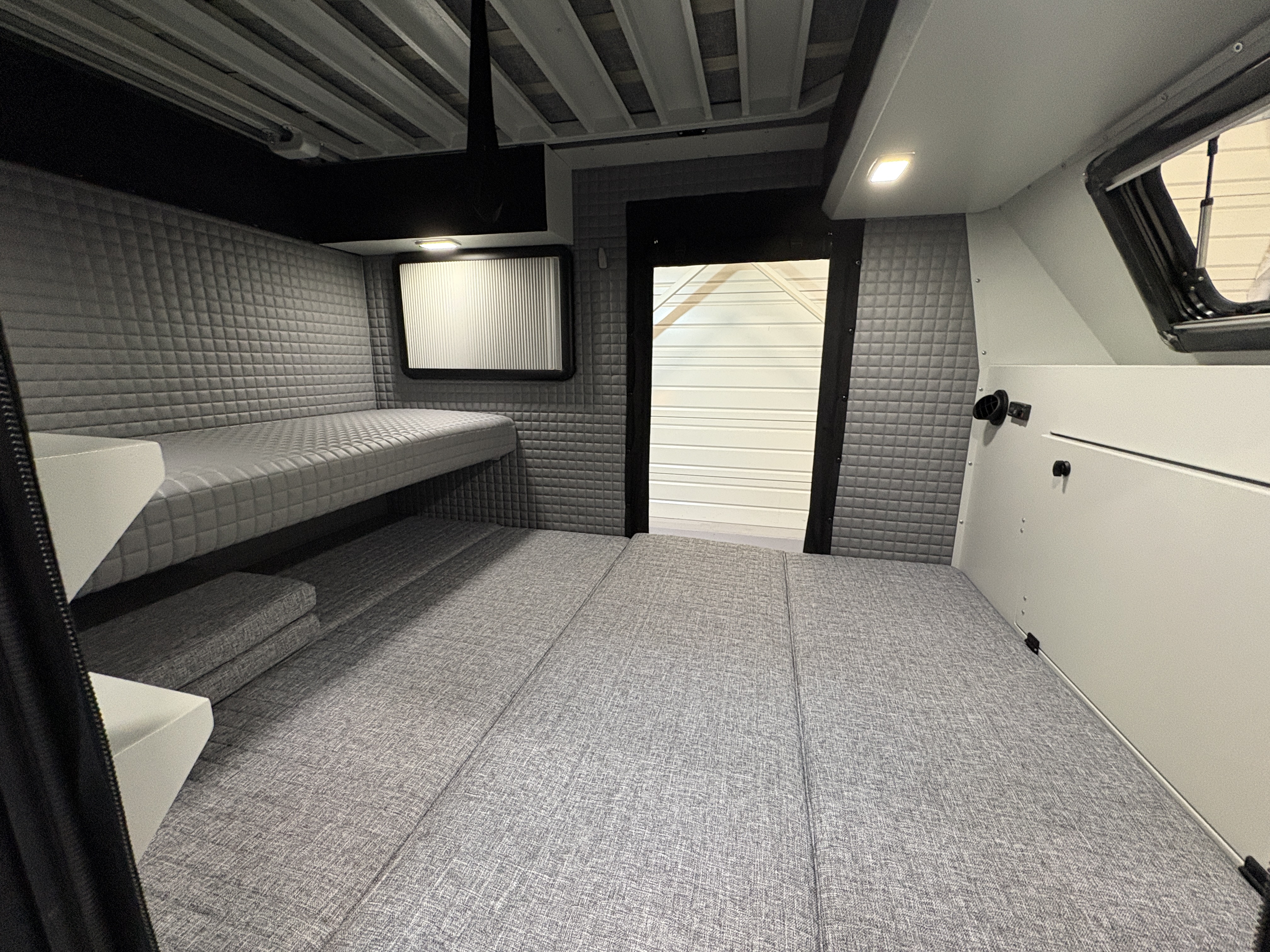 2 fenêtres latérales avec moustiquaires et stores occultant